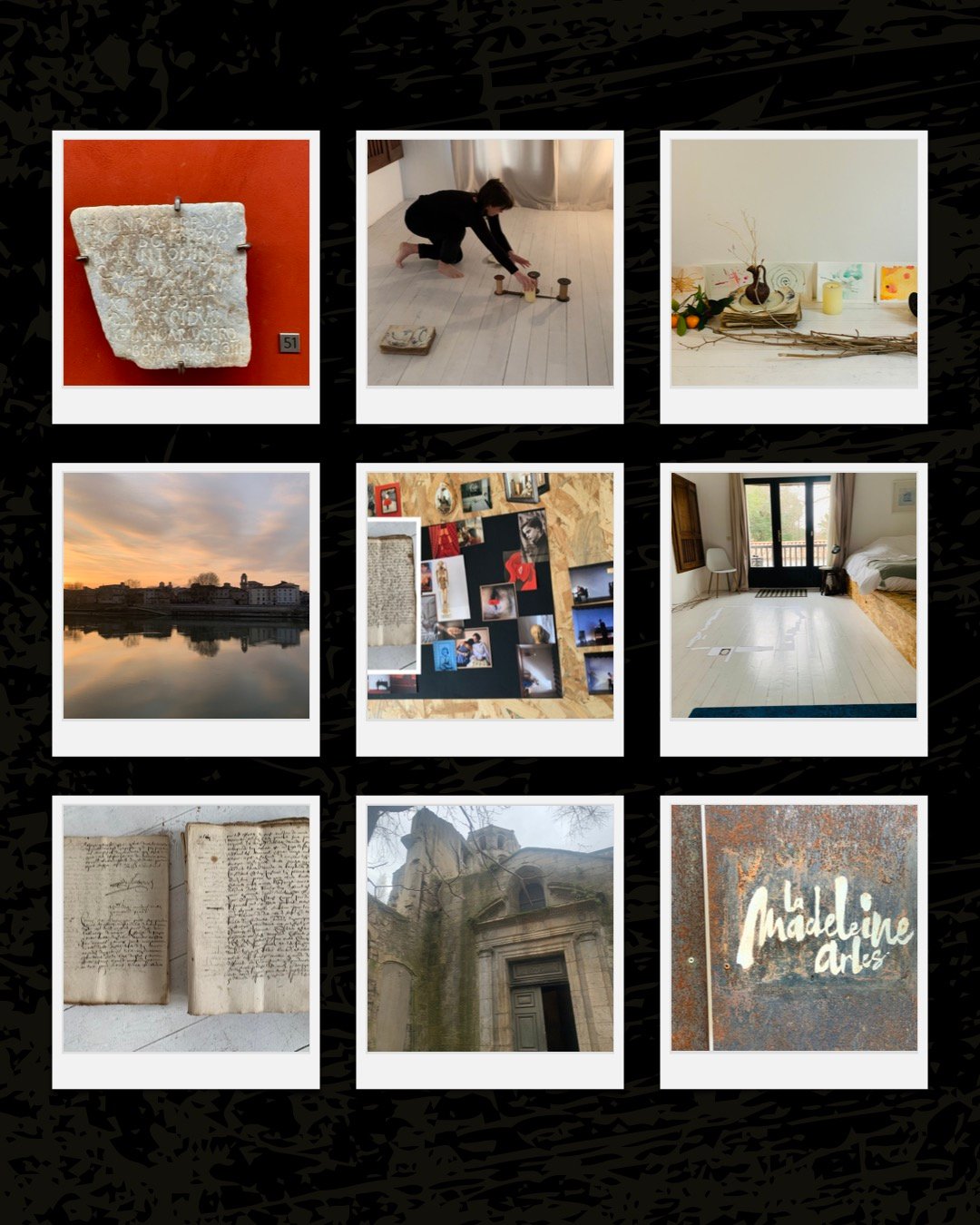 Arles m’a tendu ses bras. J’ai marché chaque jour pour comprendre la ville, sa topographie et sa trajectoire bâtie sur un millefeuille Antique, Médiéval, Renaissance dont l’histoire est aussi belle que sanguinaire. Elle m’a donné les objets qui manquaient à ma cellule, ceux pour amorcer une narration non linéaire, un geste (mouvement du corps révélant un état d'esprit ou visant à exprimer, à exécuter qqch) et une geste (l’amorce d’un poème épique corps-voix). La ville m’a happée, littéralement, j’ai cru ne jamais en sortir à chacune de mes errances j’attendais l’instant où elle desserrait ses bras afin de retraverser le Rhône, tracer le quartier de Trinquetaille et revenir à La Madeleine.